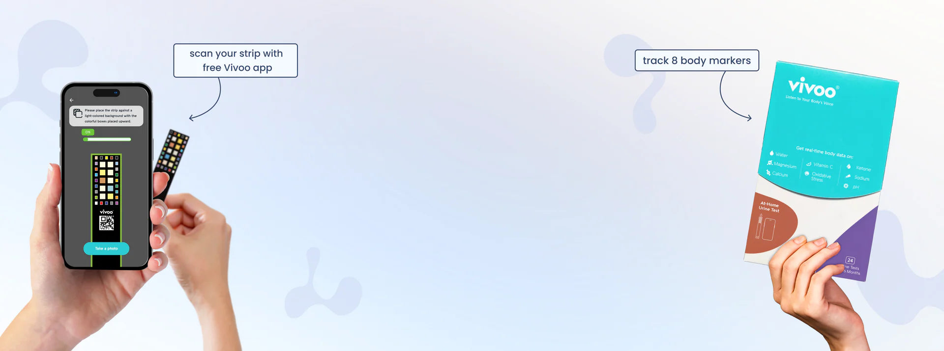 Combining advanced image processing with lab-grade accuracy, our tests provide insights into your health with over 96% precision*. Not only does Vivoo deliver your body's data, but it also provides actionable steps to improve your wellness.