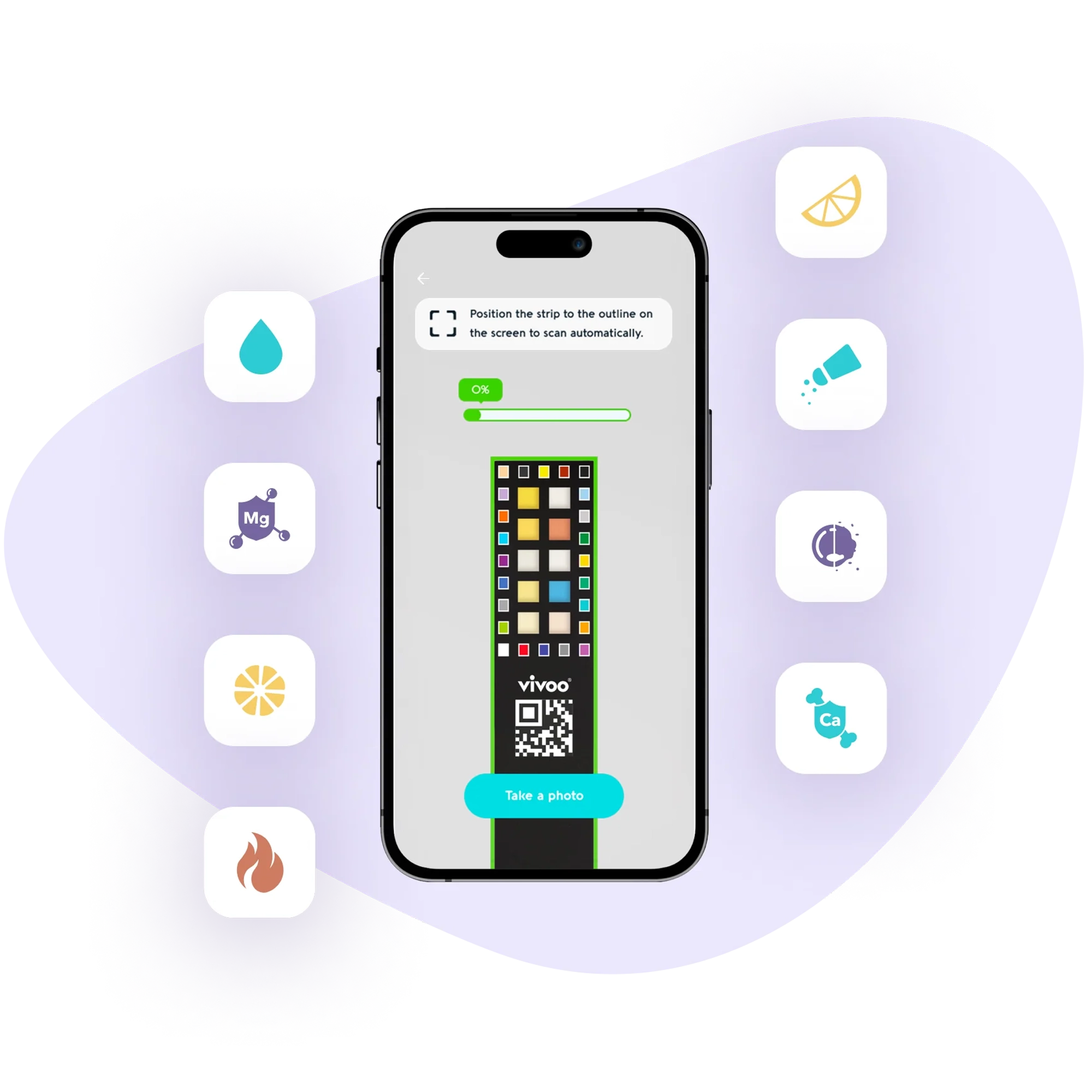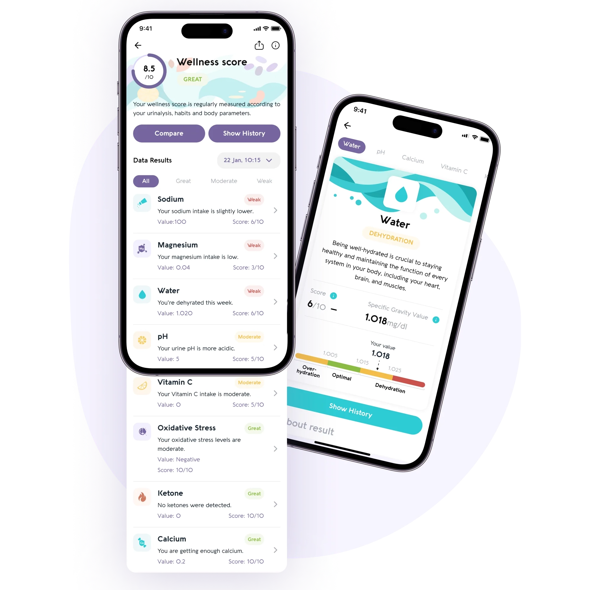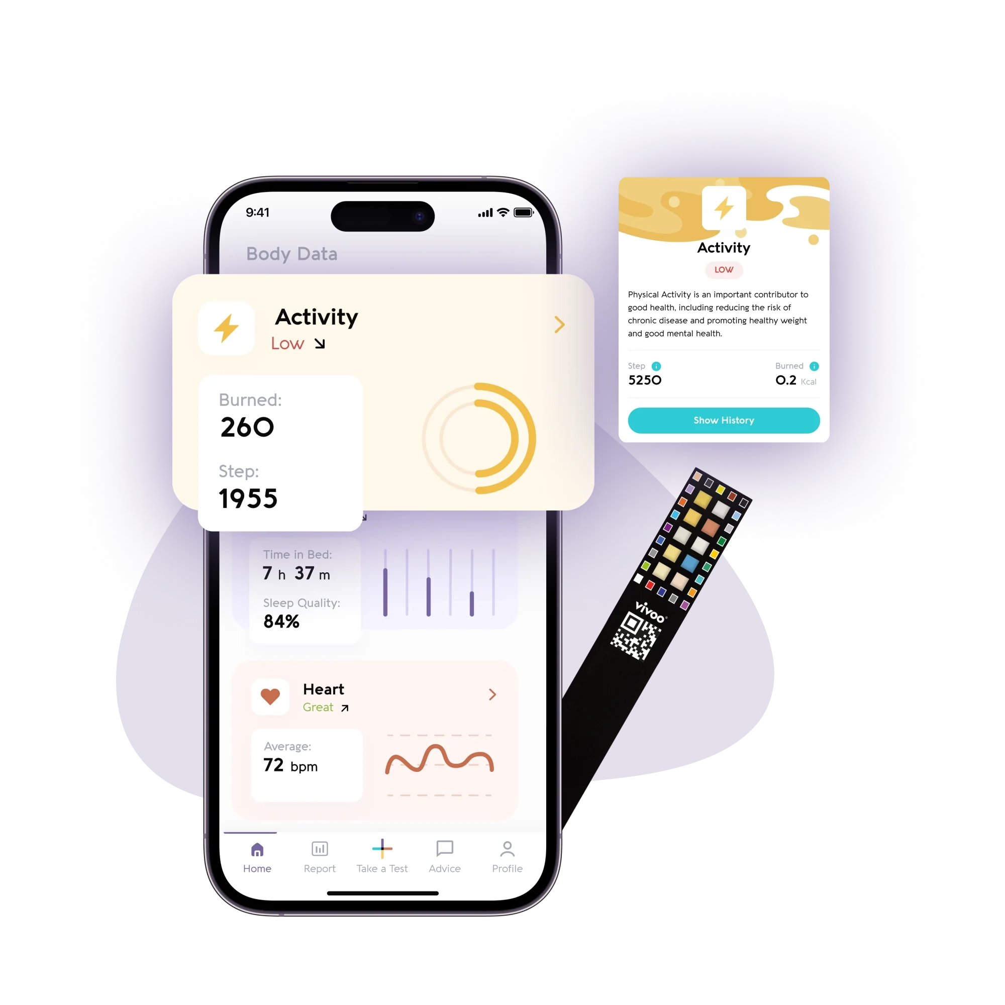Vivoo Wellness Test helps you understand your body’s needs with an easy, at-home urine test. In just 90 seconds, you can measure 8 key wellness markers and receive your wellness score and easy-to-follow personalized recommendations.